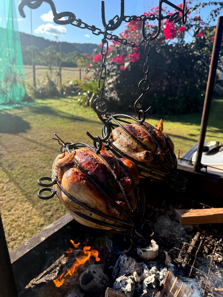 The Aussie Cooking Cage is your ticket to authentic live fire cooking. Hand-fabricated from heavy-duty 6mm solid round bar, this versatile cage lets you hang meat, fish, vegetables, or whole roasts over crackling flames with complete control and safety.