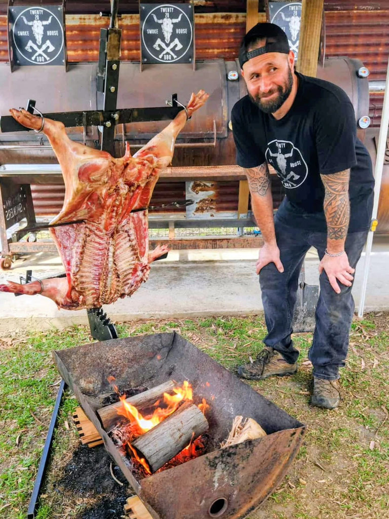 This authentic Argentinian Iron Cross is the perfect companion for grilling whole animals up to 20 kilos over a crackling wood fire, infusing your meats with mouthwatering flavors.