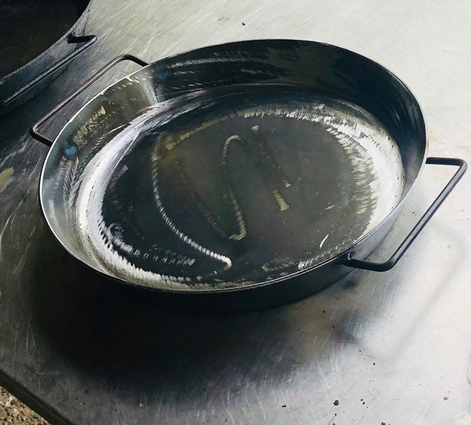 Fabricated from Australian Mild Steel it is 270 mm in diameter, has a 6 mm base, 3 mm sides & 2 handles. This ACK bit of Cooking Gear is one versatile bit of kit. Whether you need something for in the kitchen at home, Camp Cooking, Backyard Cook Ups, in your Wood fired Oven or Gas or Electric BBQ’s the ACK BABY BBQ PAN is up to the task. This ACK BABY weighs in at 4 kilos. Have your BABY BBQ PAN Personalized with EMBOSSING