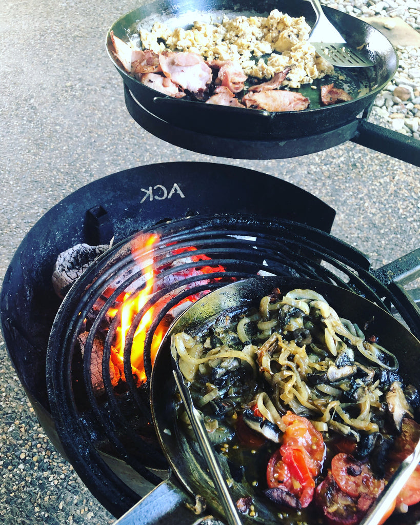 It works with all the AUSSIE CAMPFIRE KITCHENS GEAR, sitting on the Swinging or Folding Grills working with any FIRE PIT.